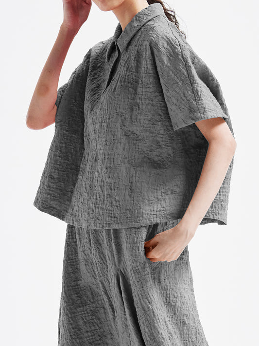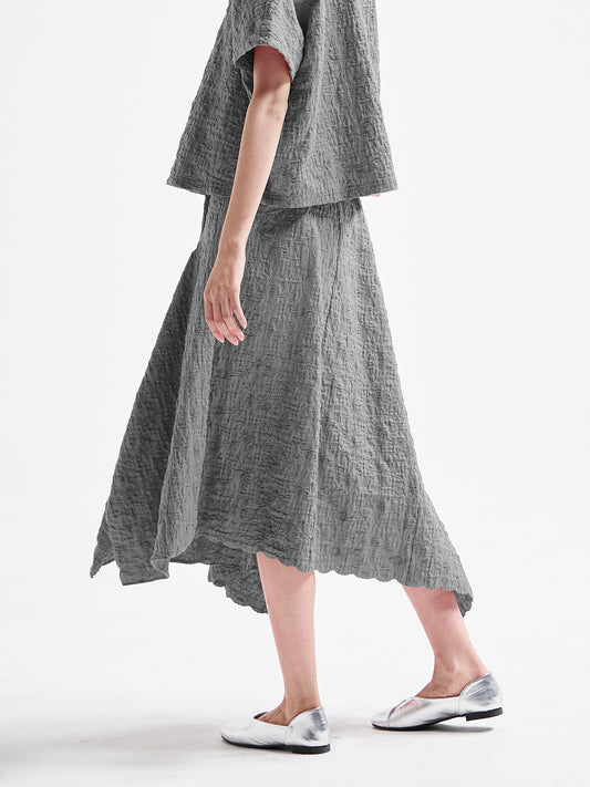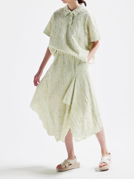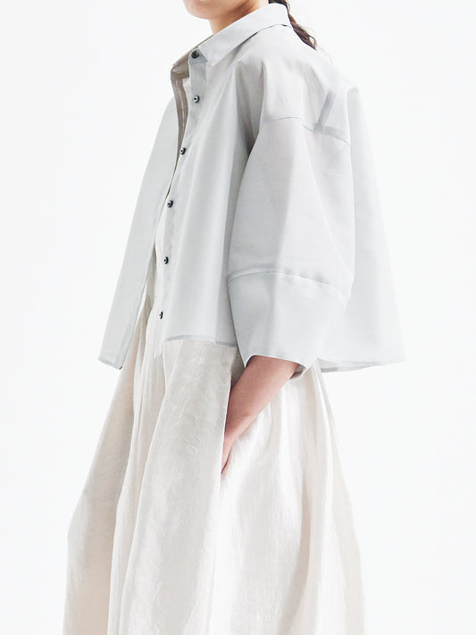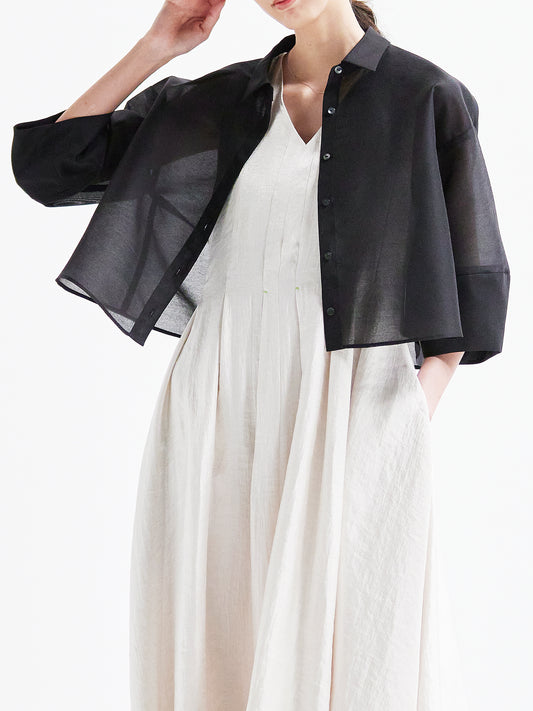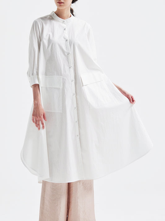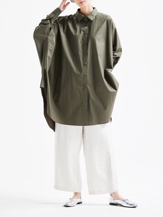 The façade exudes an elegant and airy presence, the sleeves adapt seamlessly to the wearer's form, and the hem sways with a languid grace.